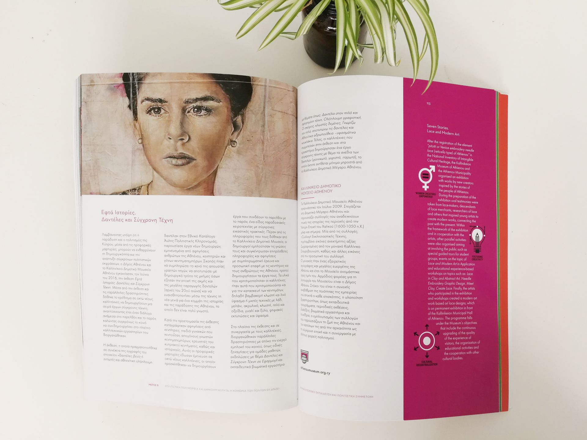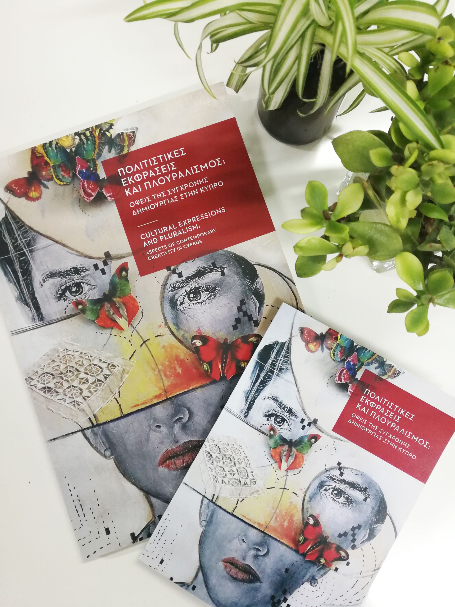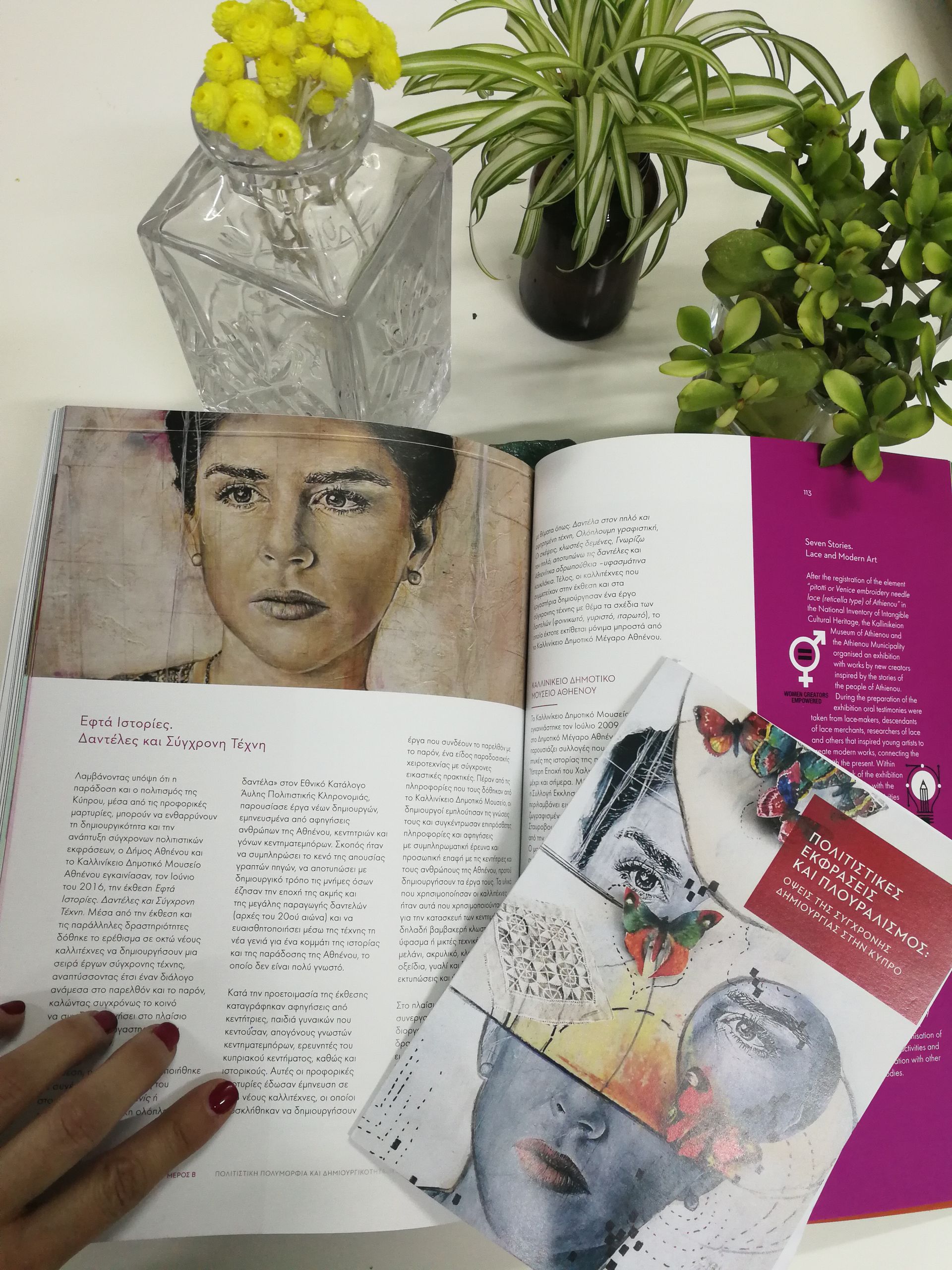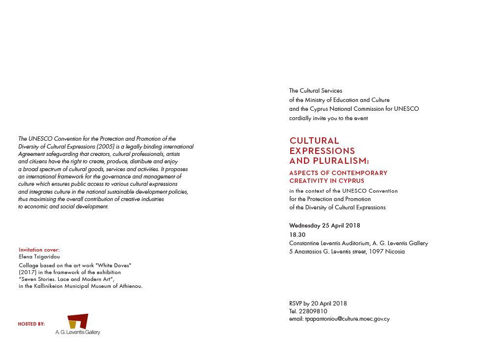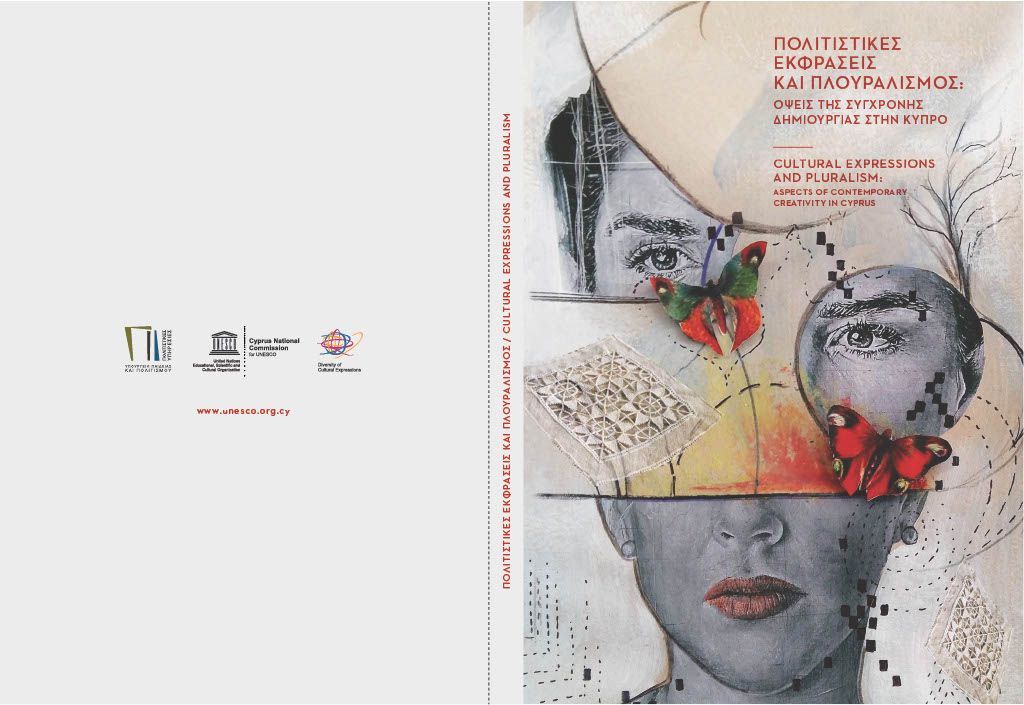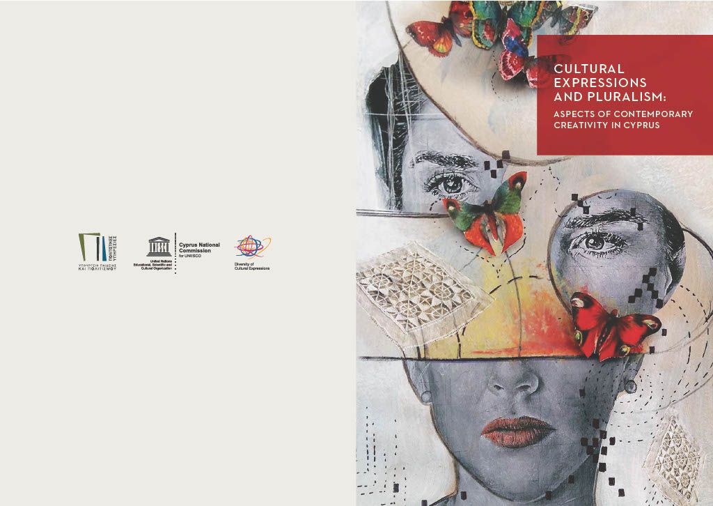 UNESCO BOOK PUBLICATION CATALOGUE, ENTITLED CULTURAL EXPRESSIONS AND PLURALISM, FEATURES ELENA TSIGARIDOU'S WORK FOR COVER AND INVITATION MATERIALS.